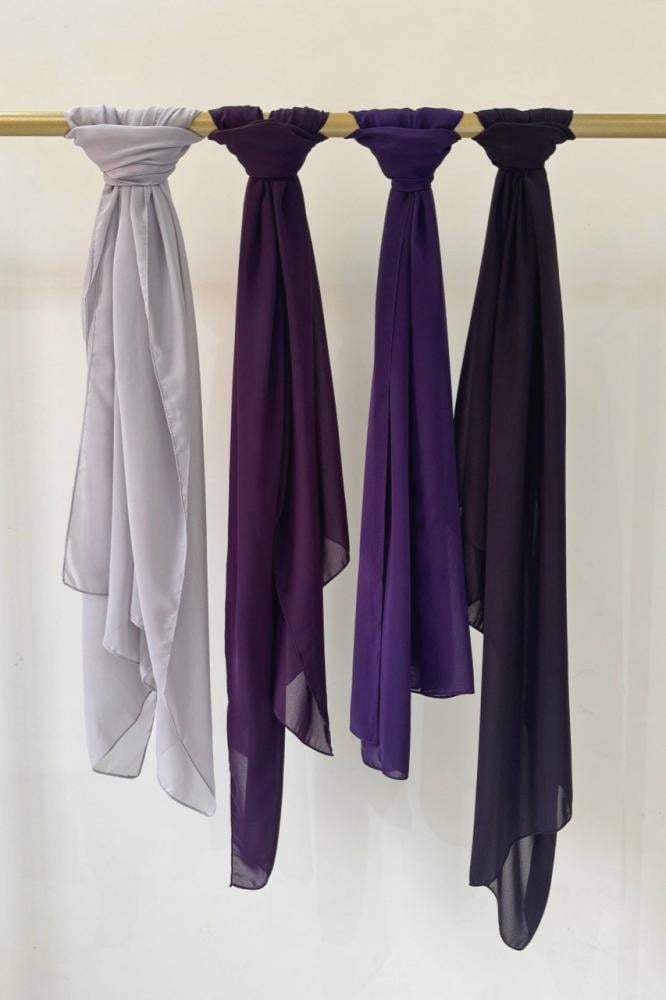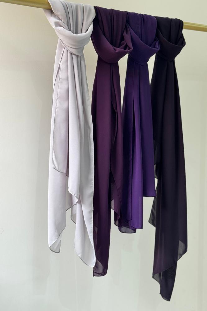 طرحة أنيقة مصنوعة من شيفون كريب ناعم وخفيف، بتصميم انسيابي وألوان متعددة تناسب مختلف الأذواق والإطلالات.